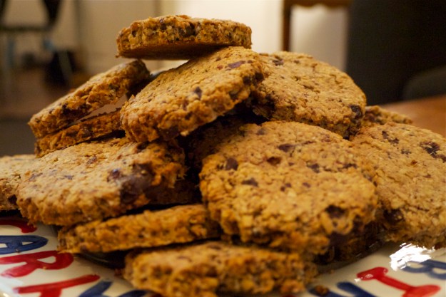 Once cooled, they are like a cross between a flap jack and a chocolate cookie. But without the butter. So they’re healthy. Kind of.