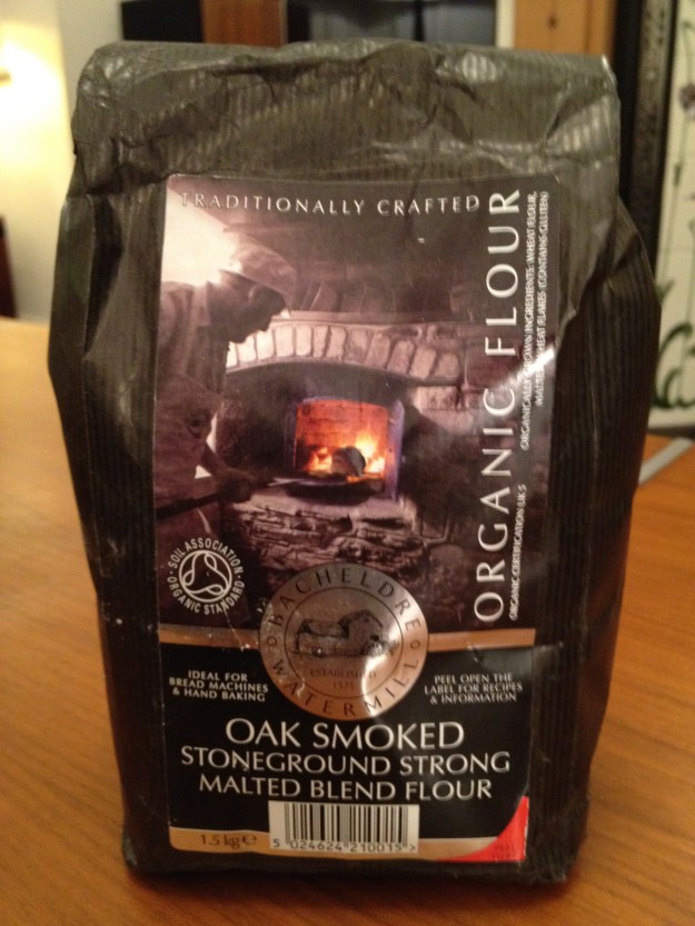 So I start with 500g of this really good “organic oak smoked stoneground strong malted blend flour” (I know – what a bloody mouthful – but it’s pretty good). To it, add a 7g sachet of yeast, a good pinch of salt and a couple of tablespoons of honey dissolved in about 300ml of warm water. Mix the whole lot together and knead for about 10 minutes then leave in your mixing bowl in a warm place with covered with a wet tea towel for at least an hour.