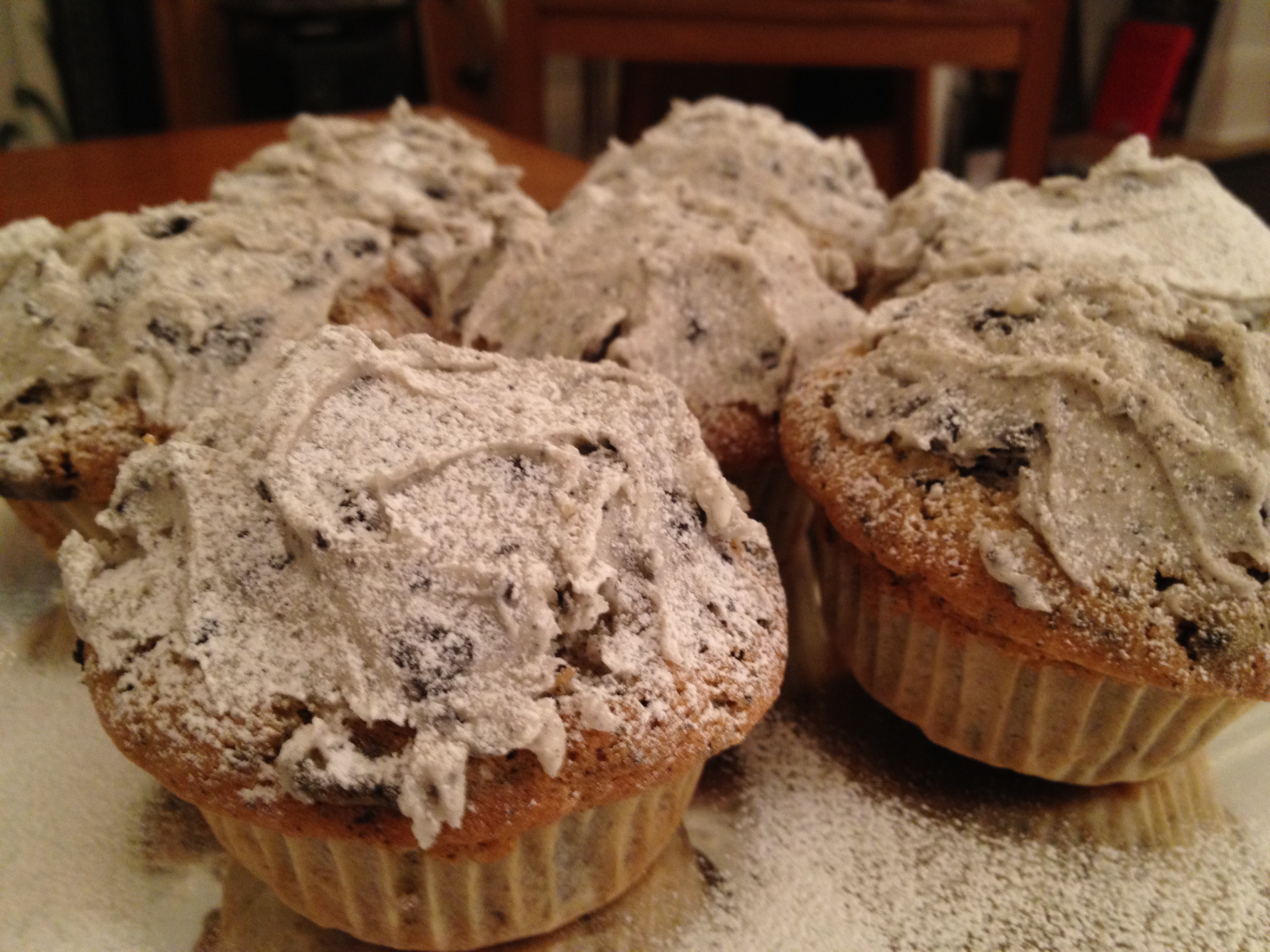 Spoon the mixture into cases in a muffin tin and bake them the oven at 170c for about 20 minutes. Check them for the last 5 minutes – you really don’t want them to overcook. You’ll know when they’re done by sticking in a cocktail stick – it should come out almost clean (if there’s a little bit of goo that’s good as they’ll continue to cook a little once you take them out). When they are done, let them cool on a wire rack.