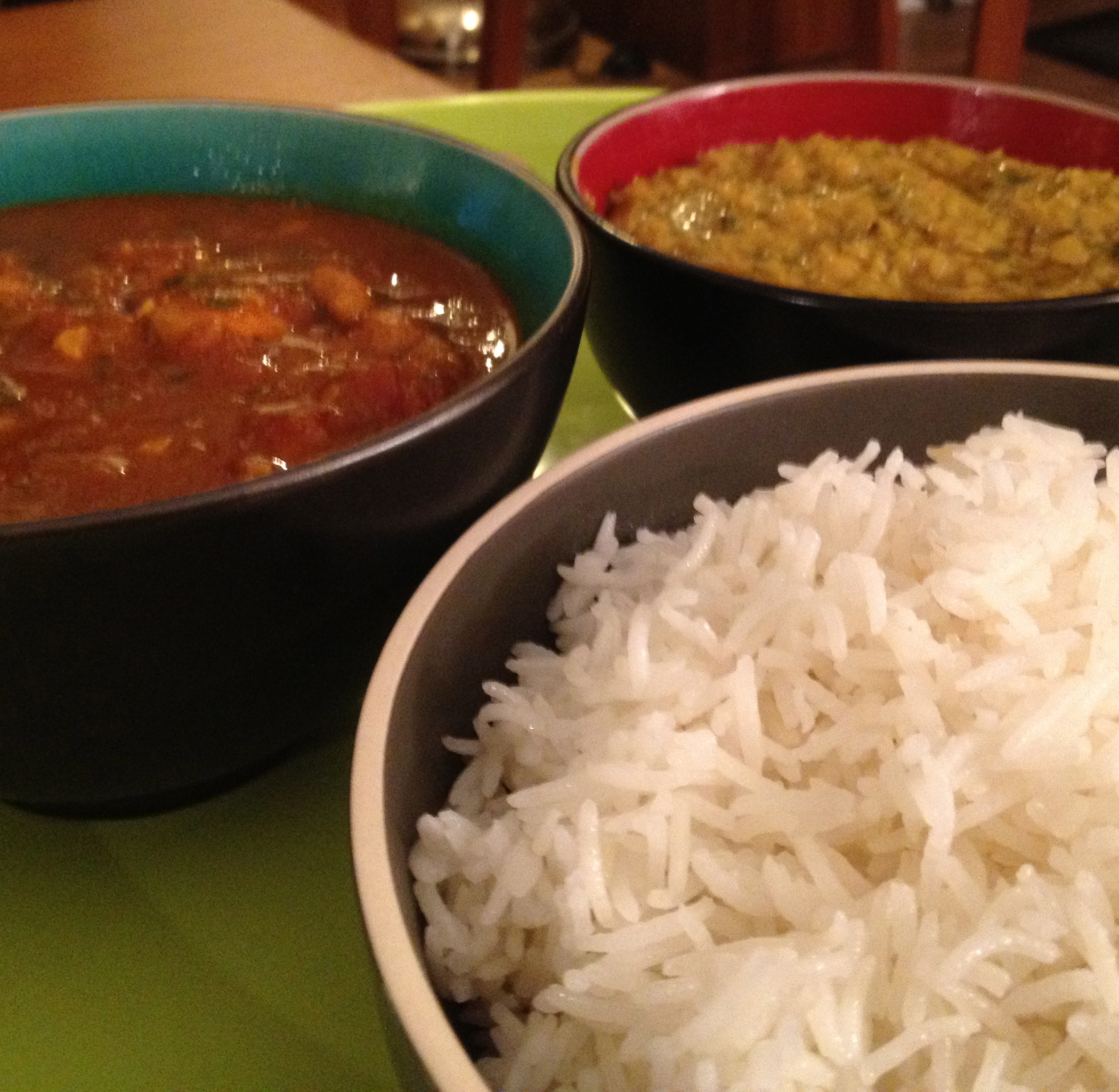 Serve with Dhal (I’m pretty sure I’ve already covered that somewhere on this blog) and yoghurt (and rotis heated in a frying pan if you have them).